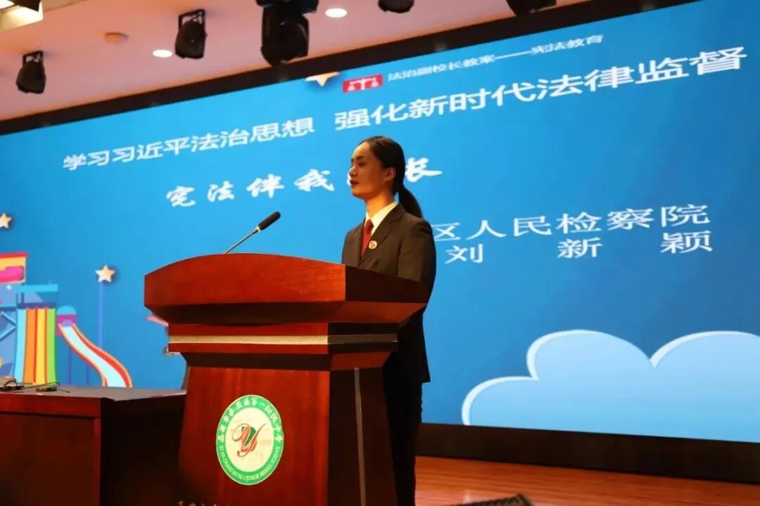 长安第一初级中学邀请区检察院刘新颖老师来校作《宪法伴我成长》专题知识讲座。刘老师用图文并茂的讲解和详实的案例,从宪法的地位、宪法的内容以及宪法与个人的关系等方面让学生深刻认识宪法的重要性,并引导学生懂法、依法、守法,从小就有自觉尊崇宪法、学习宪法、遵守宪法、维护宪法、运用宪法的意识。