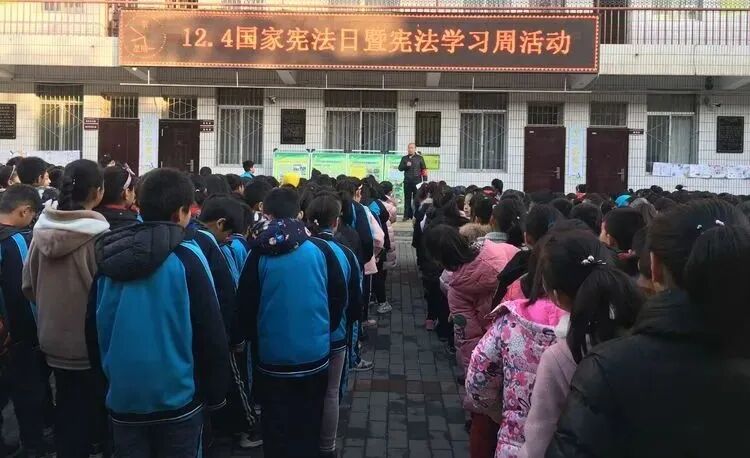 韦曲街道侯家湾小学通过国旗下讲话,向师生们宣传国家宪法日的由来以及学习宪法的重要意义。